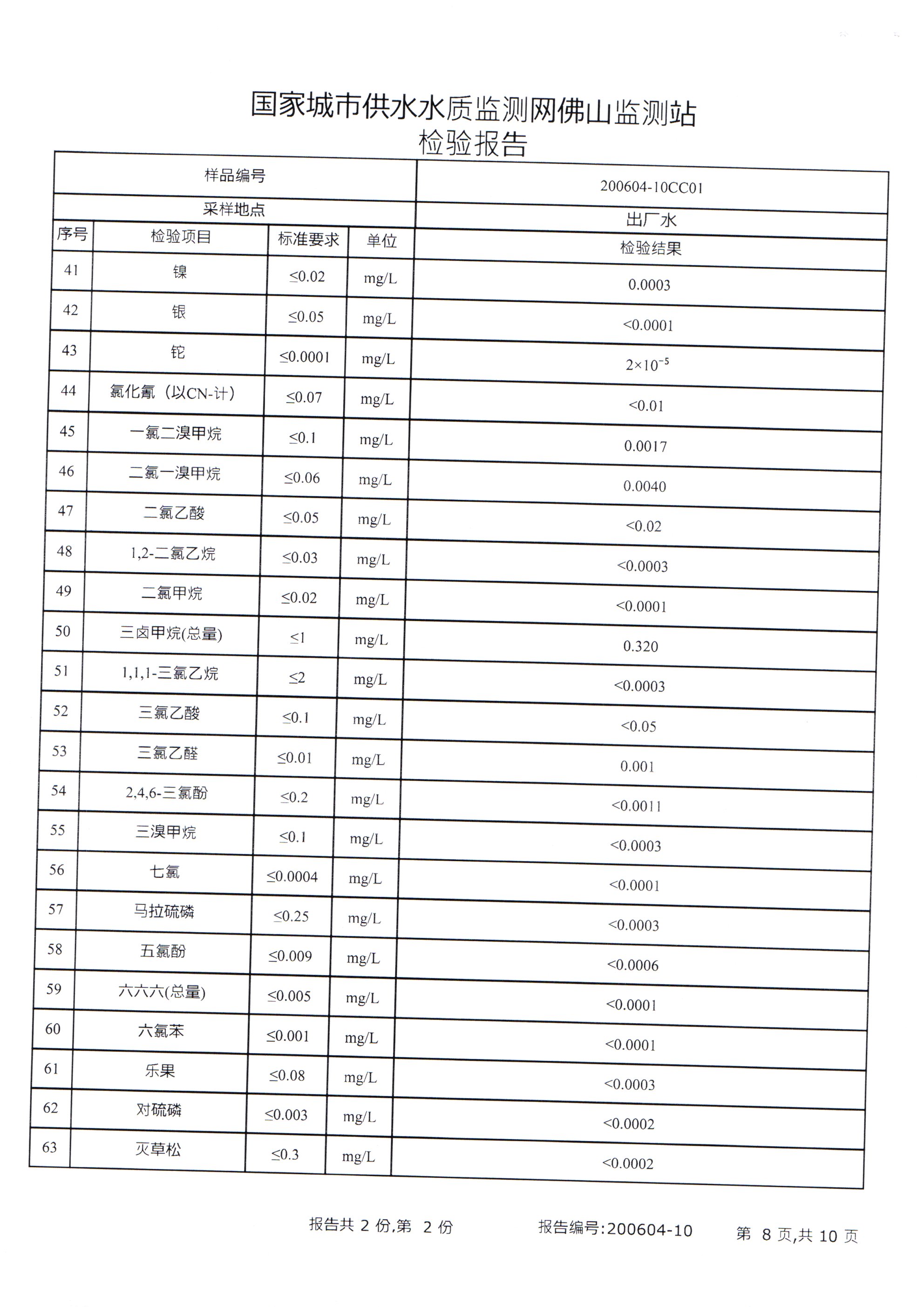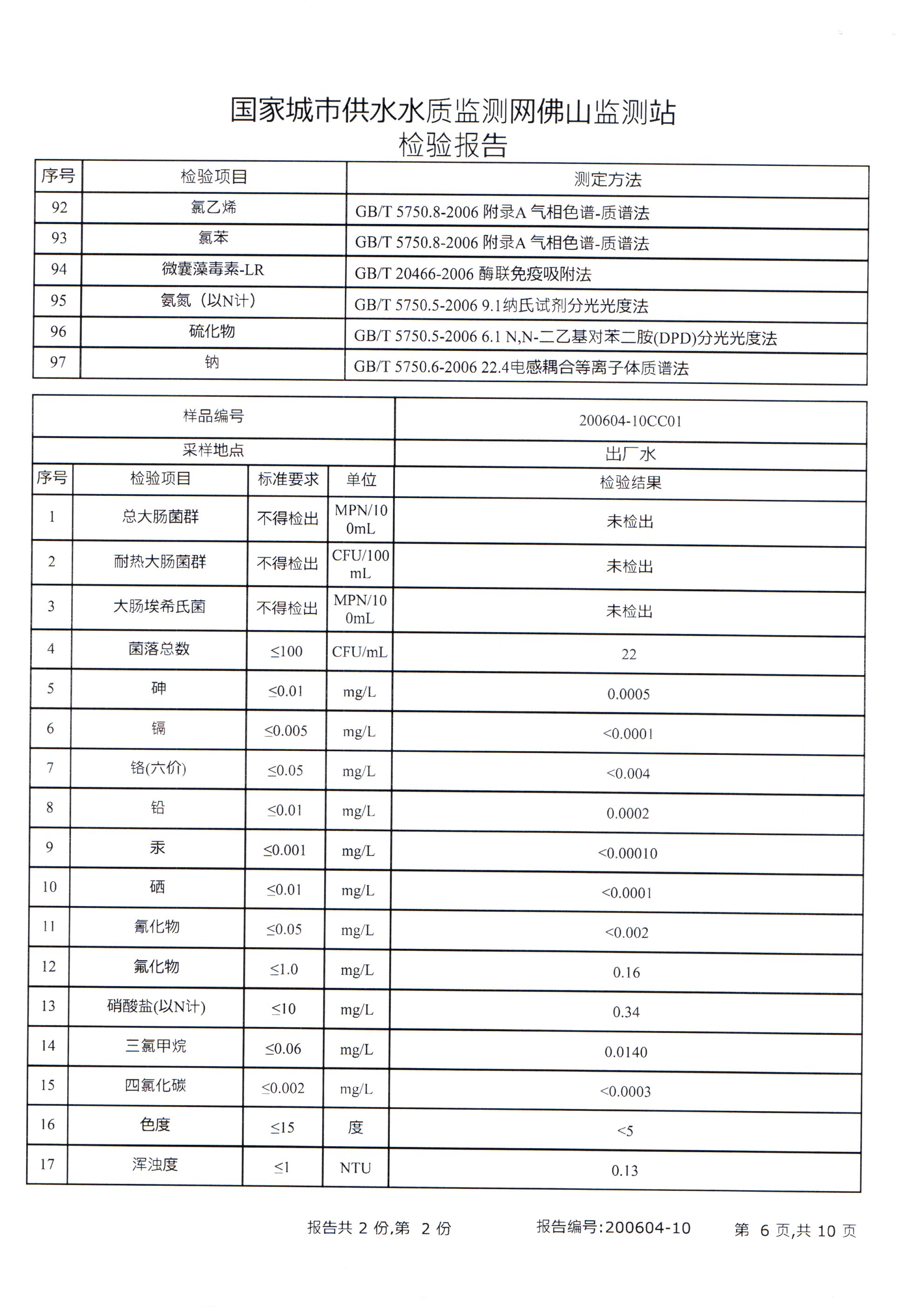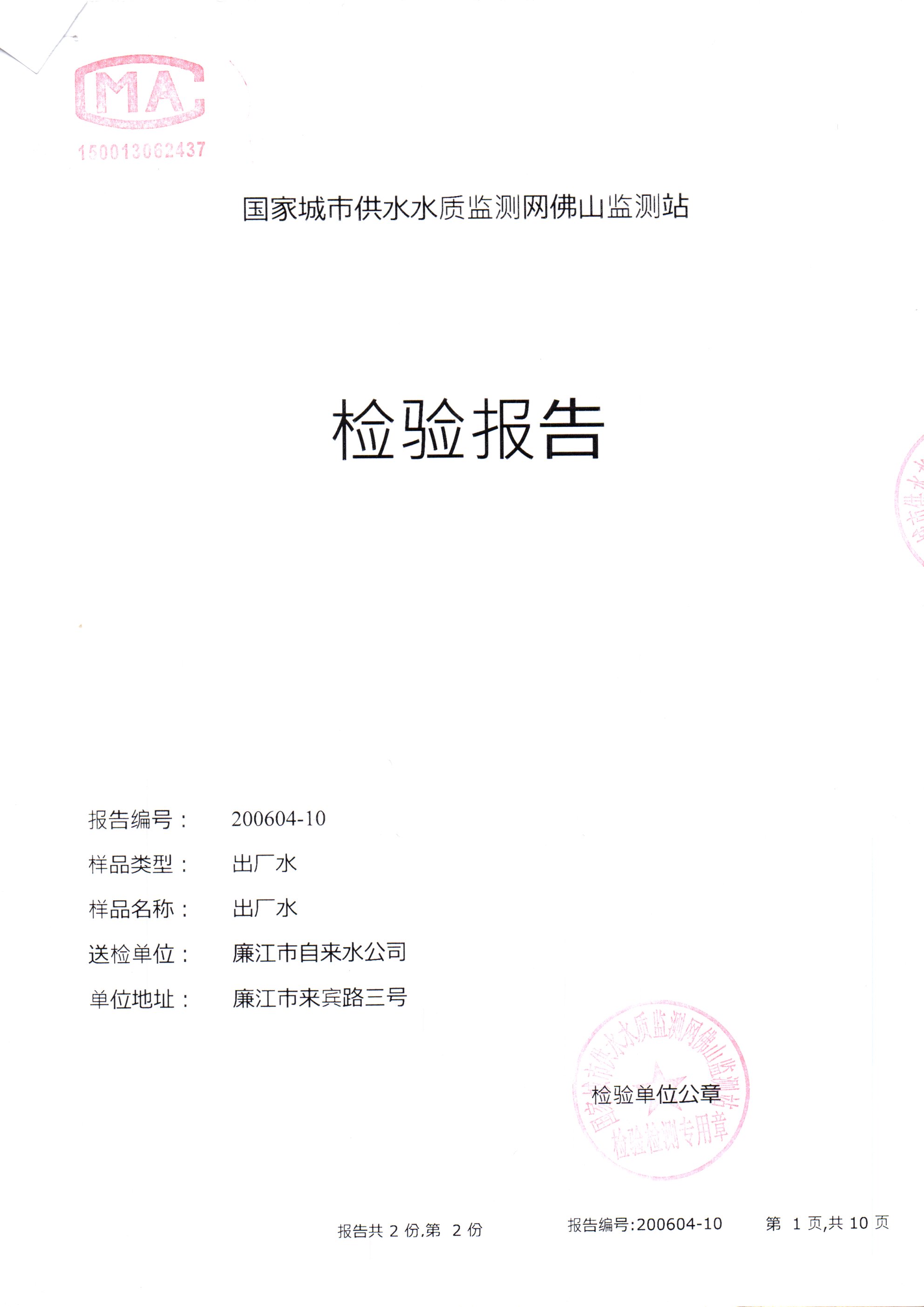 廉江市自来水有限公司出厂水检验数据(