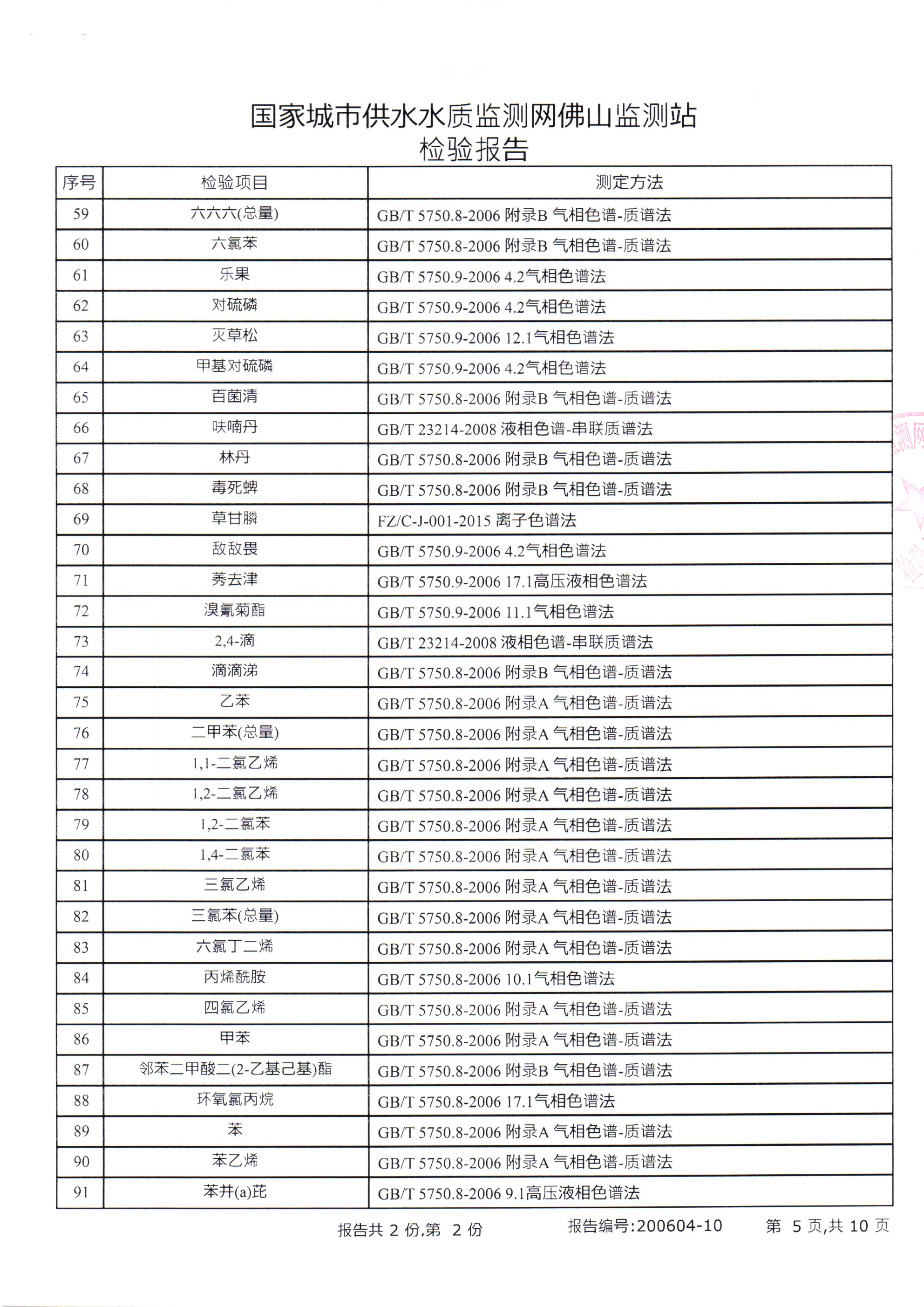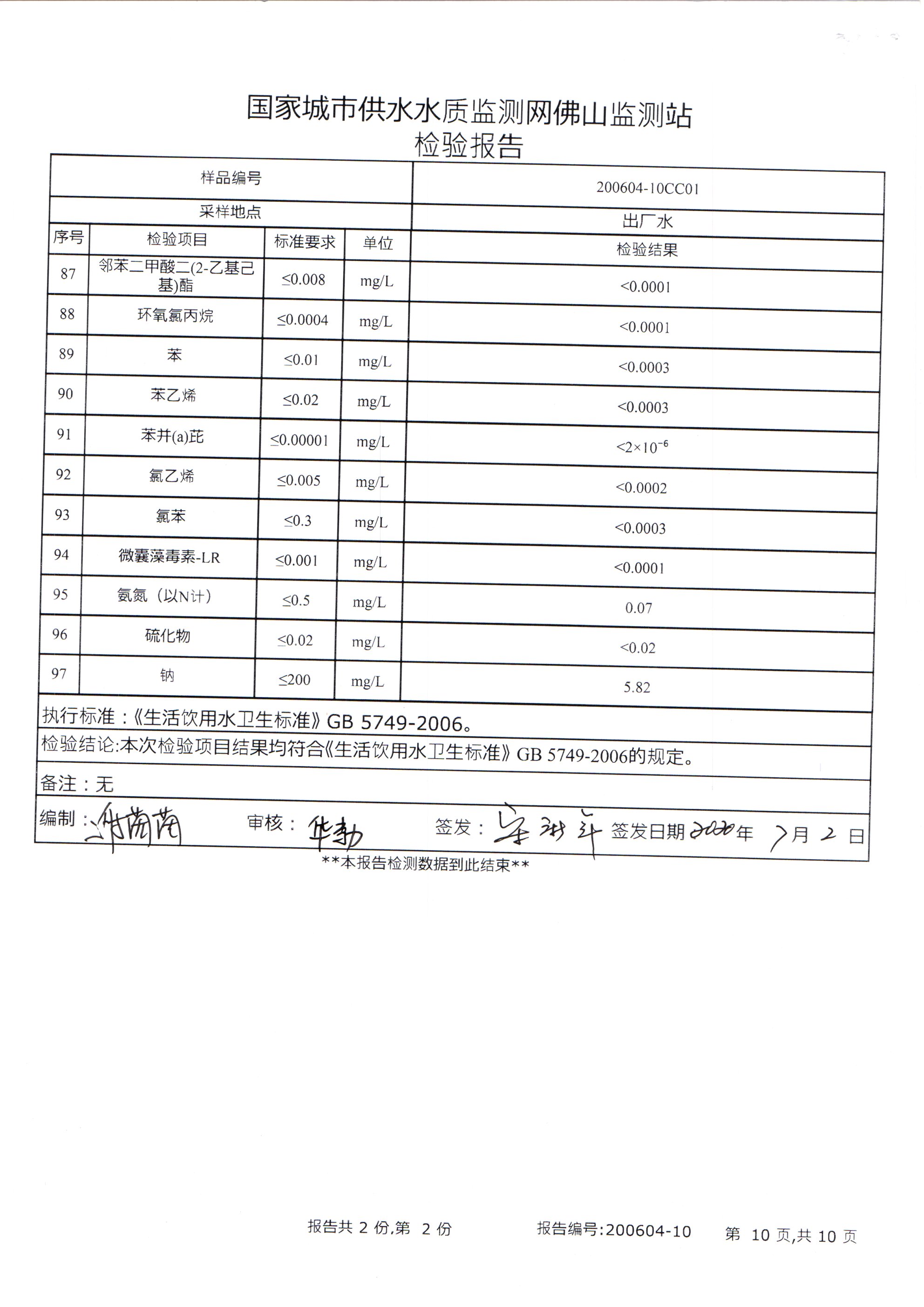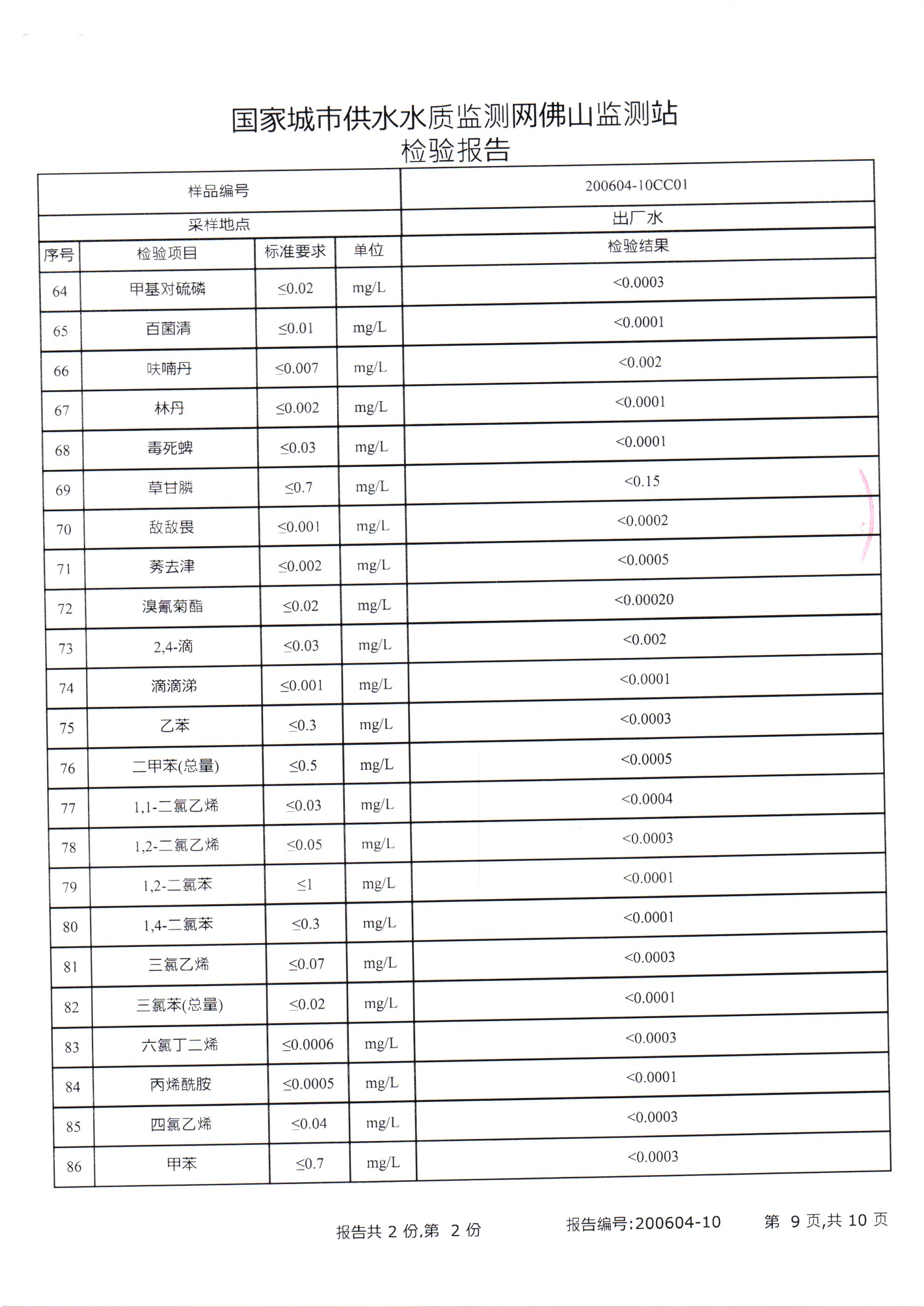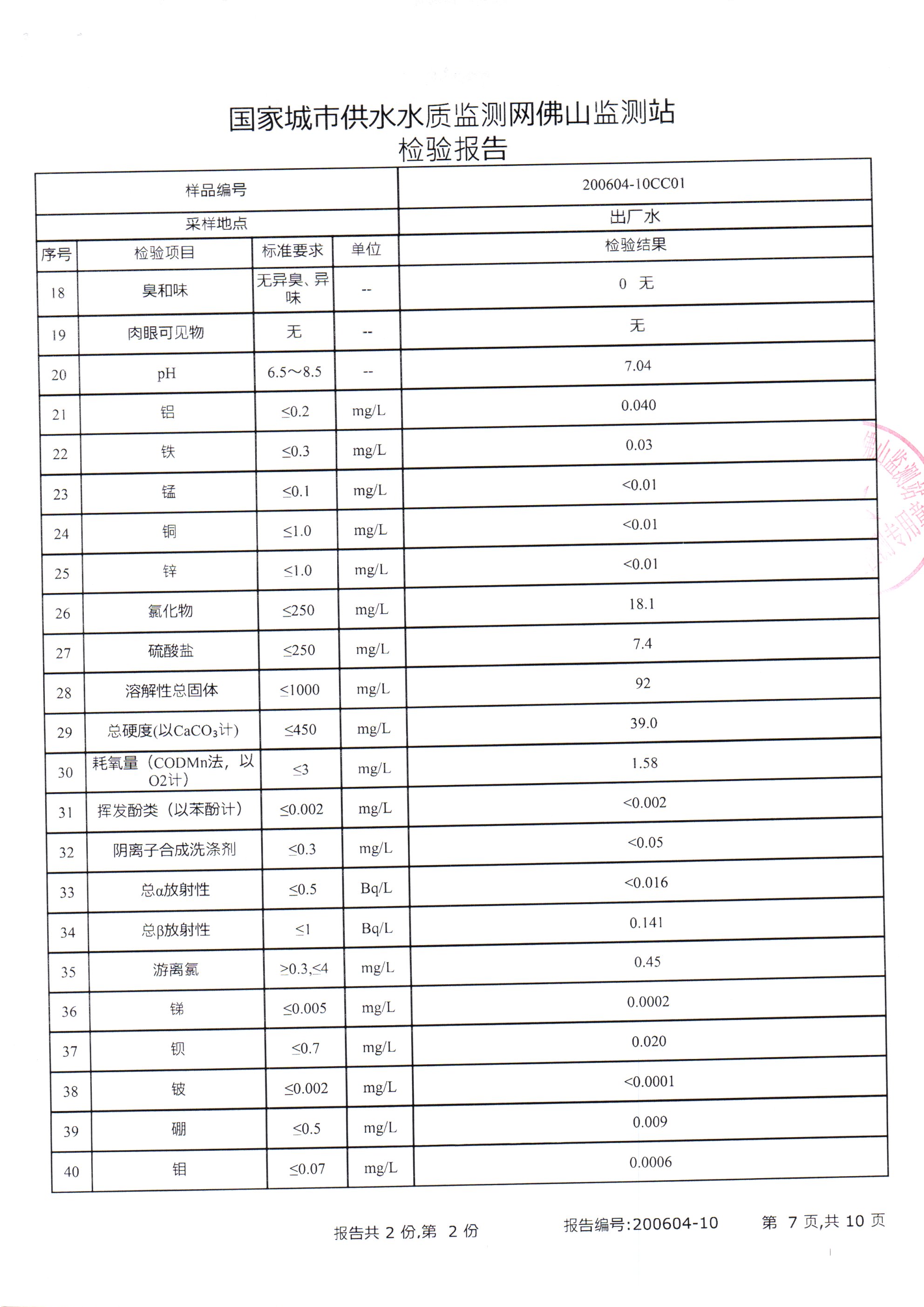 廉江市自来水有限公司出厂水检验数据(